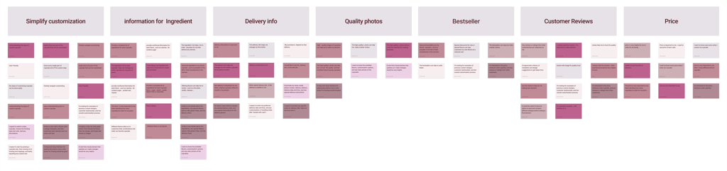 We conducted an open card sorting from competitive analysis and heuristic evaluation of five existing websites. 12 people participated in the online research, and they were able to create their own categories. The following is a sample of one of the card sorting.