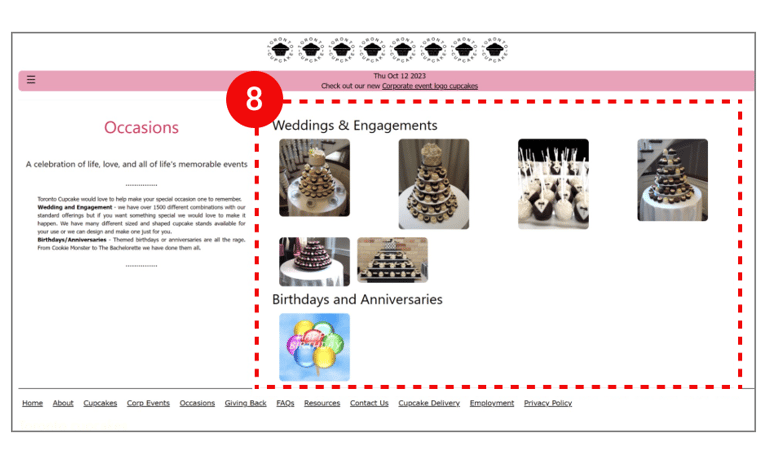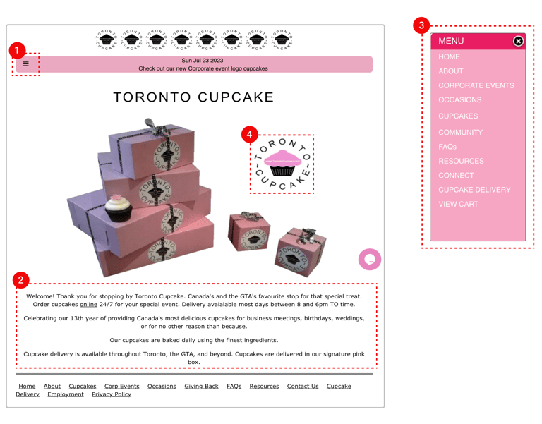 4. The logo is a CTA to order cupcakes, but users don’t realize they can interact with it.